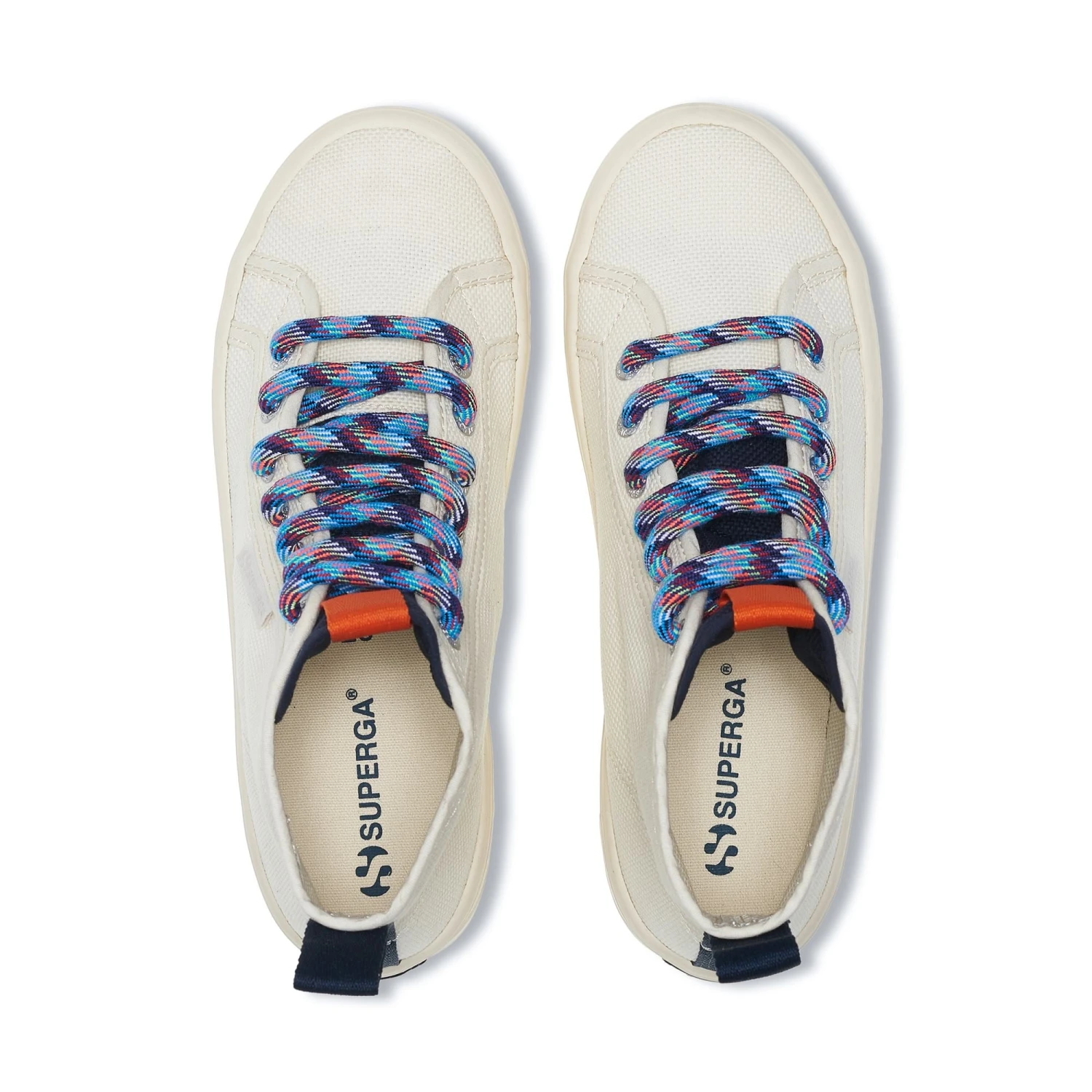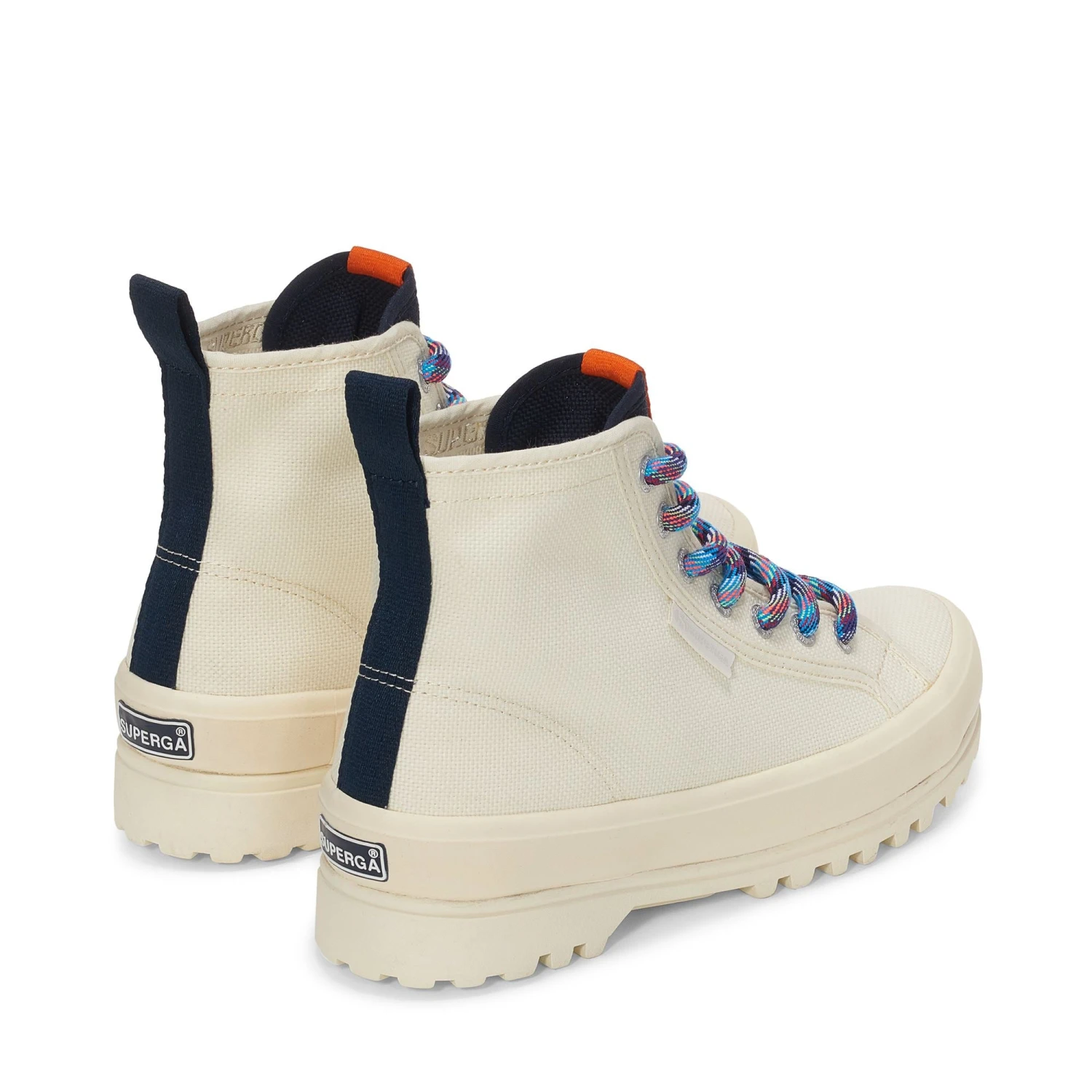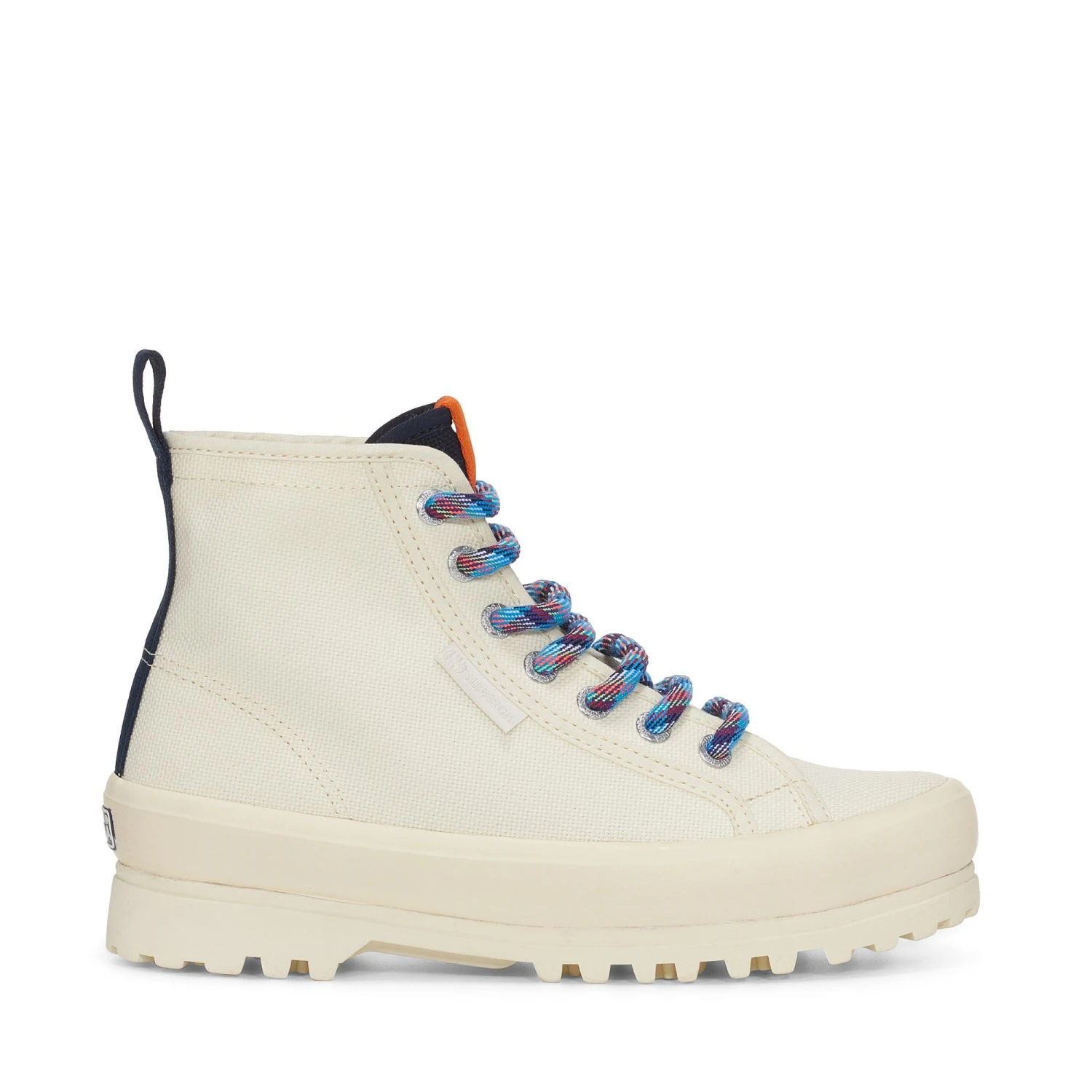 The Alpina sneaker has left its footprint on the history of fashion with its bold and iconic lug sole. Born in the ’50s for mountain excursions enthusiasts, today it supports you in conquering your personal peaks with its gritty style: a breathable high-top cotton canvas upper, track sole, and sporty pop accents such as the rear pull tab and multicolored trekking-inspired laces.