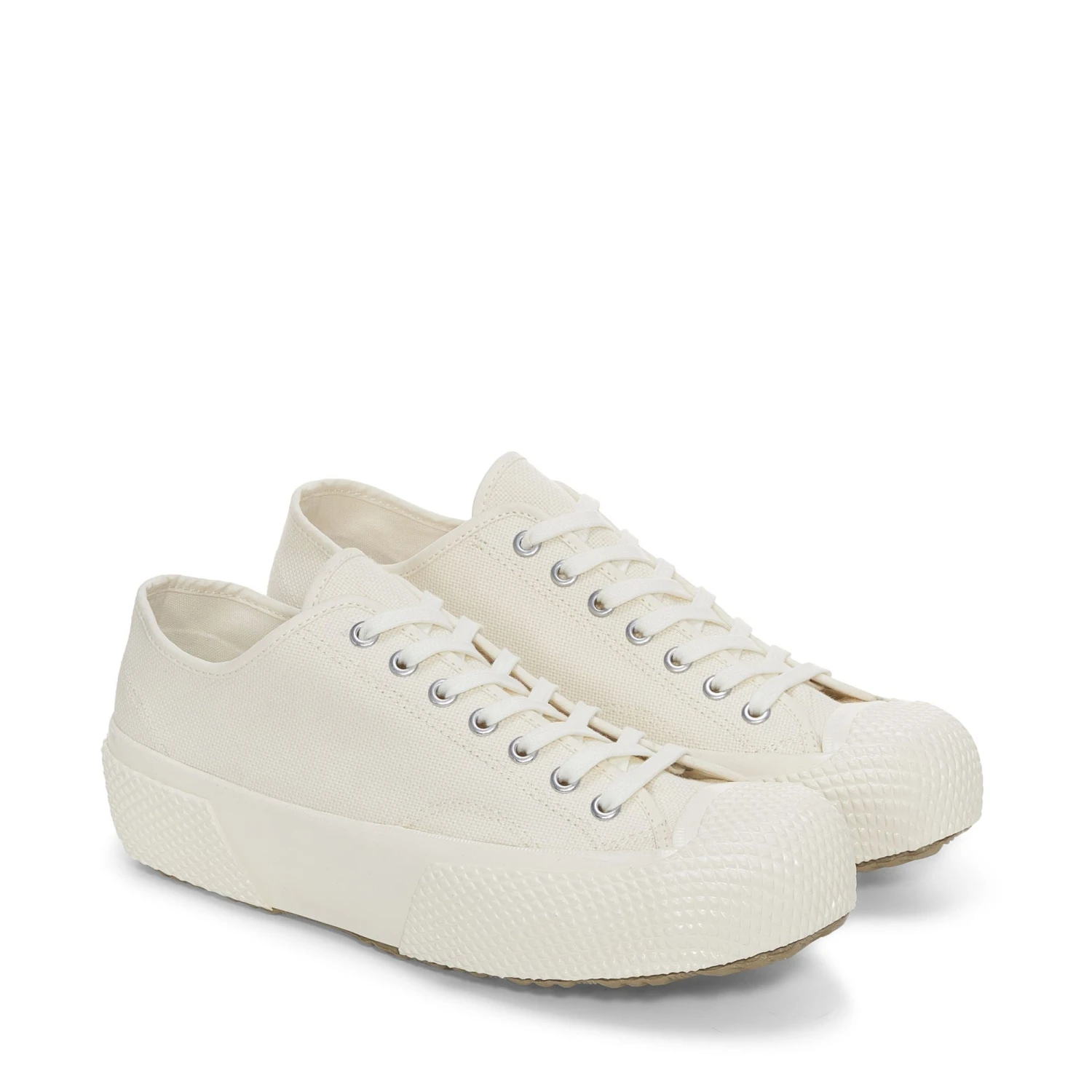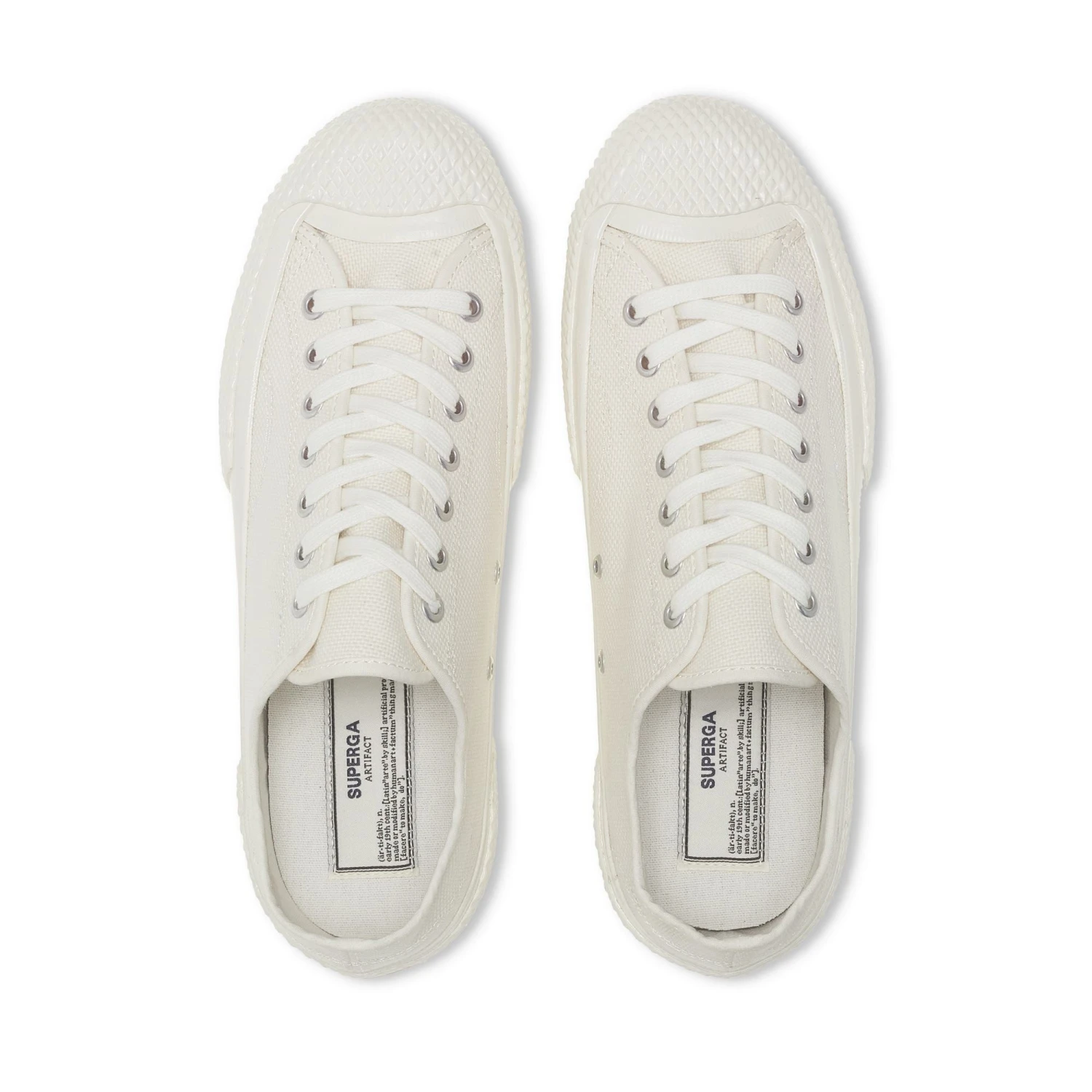 The Artifact collection reinterprets and elevates Superga’s heritage details, adding new functionalities and providing each sneaker with an authentic look. Mil Spec is the military-inspired line with archival industrial references, such as the calendar outsole that recalls work boots produced by Superga in the 1950s. This low-top model stands out with a breathable cotton canvas upper, a diamond-textured bumper, and a rubber toecap.